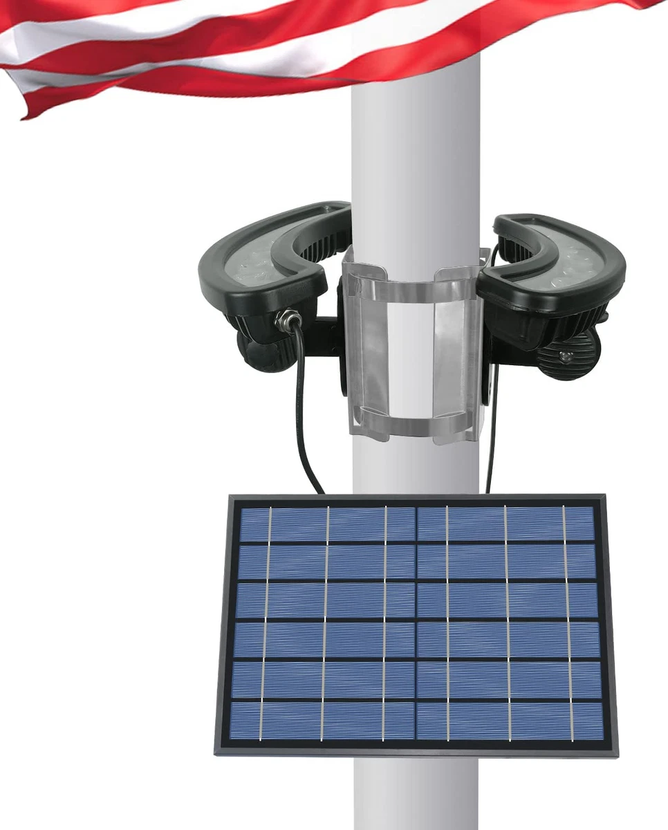 Deluxe Silver Solar Flag Pole Light Solar Powered Dusk To Dawn For 12 Hours Ebay